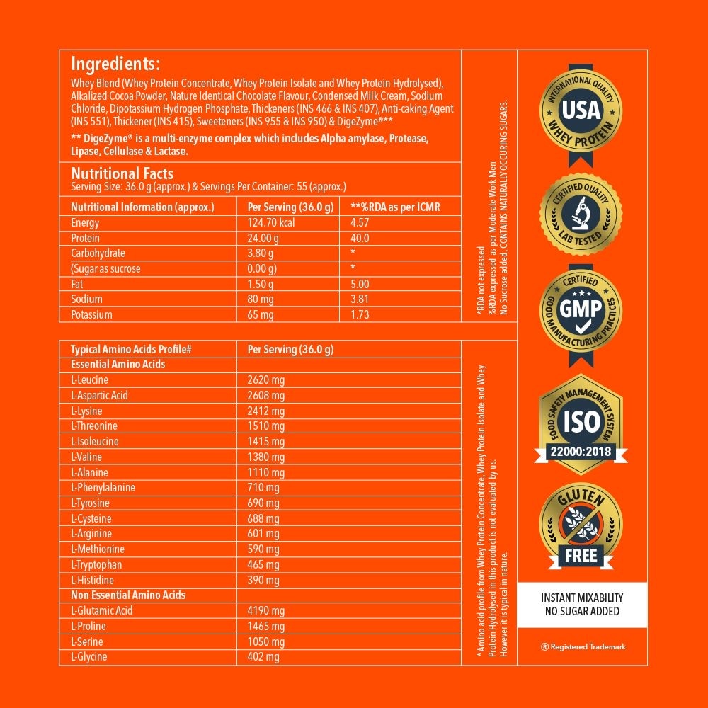 Whey Sourced from the USA to Ensure Premium Quality 24g protein in 5.4g BCAA per Serving Added Digestive Enzymes for Fast and Easier Digestion Manufactured in GMP Compliance Facility and Gluten-Free